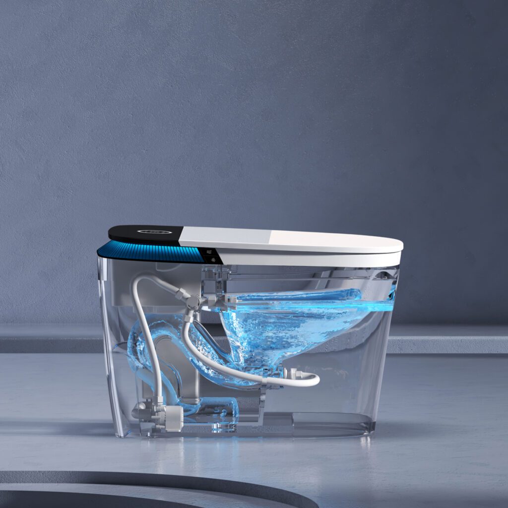 Smart toilets are equipped with advanced sensors that provide hands-free convenience. The radar-sensing lid automatically opens as you approach, while the capacitive foot sensor allows you to open the lid with a simple step. These features are designed to enhance hygiene and ease of use, making the smart toilet a truly modern addition to any […]